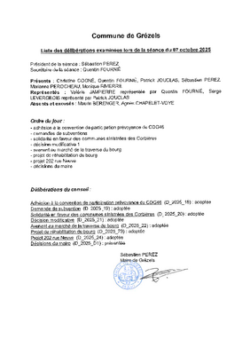 Liste des délibérations conseil municipal du 7 octobre 2025